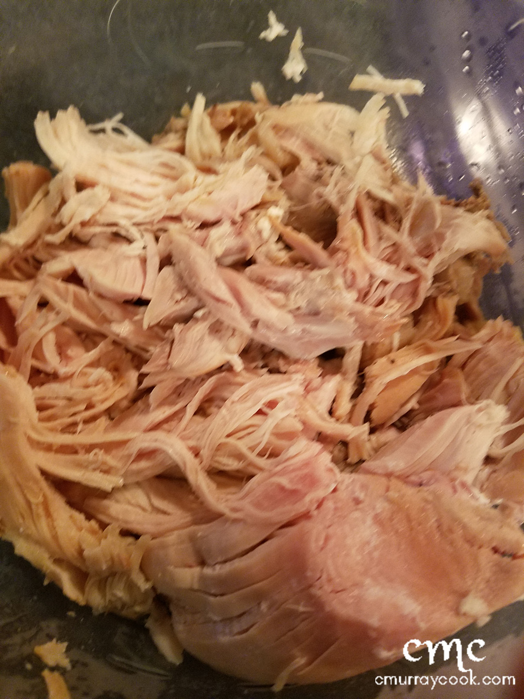 - As much of the meat from the stock as you can salvage, torn into shreds